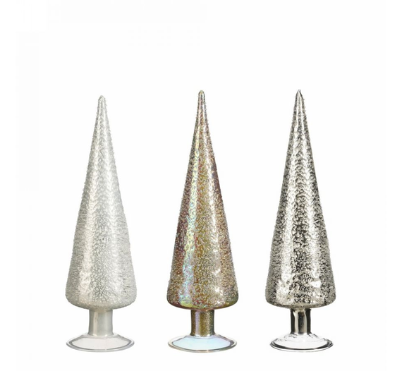 КОЛЕДНА ДЕКОРАЦИЯ ЕЛХА СТЪКЛЕНА Ø9х30см БЯЛО/СРЕБЪРНО/ЗЛАТНО