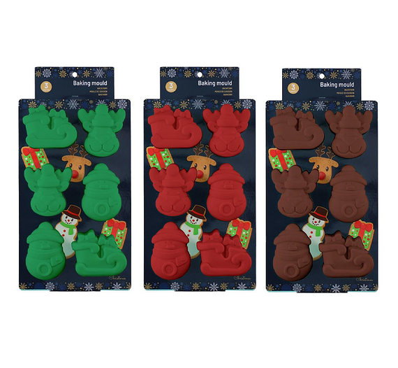 ФОРМА ЗА ПЕЧЕНЕ КОЛЕДА ALPINA СИЛИК. 29x17x3.5см К-КТ ЧЕРВ./ЗЕЛ./КАФ.