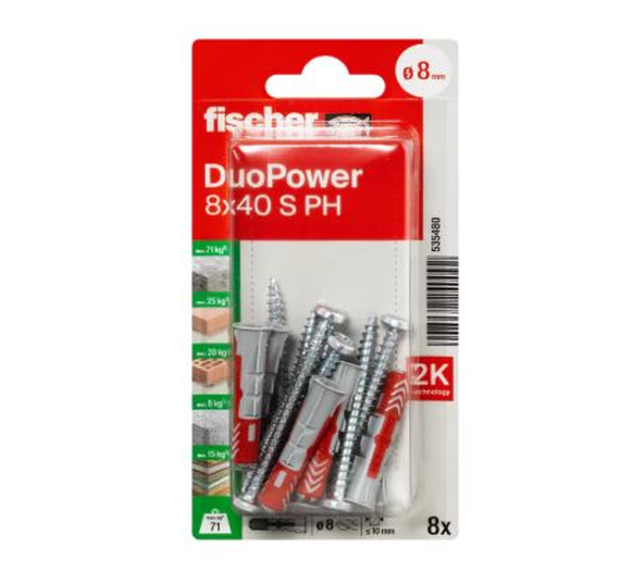 ДЮБЕЛ FISCHER 535480 DUOPOWER ф8х40мм С ВИНТ PH 8бр