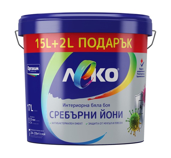 ЛАТЕКС ЛЕКО СРЕБЪРНИ ЙОНИ 15л+2л ПОДАРЪК БЯЛ